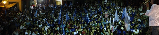 Depois de participar de participar de uma carreata, seguida de passeata pelas principais ruas da cidade. Júlio César chegou ao local do comício acompanhado de Nayane, sua candidata a vice, candidatos a vereadores, lideranças comunitárias e militantes.