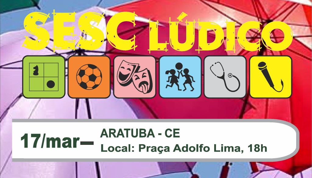 Nesta sexta-feira (17/03) a praça Adolfo Lima será tomada por muita alegria e diversão. O Serviço Social do Comércio – SESC e o Sindicato dos Servidores Públicos Municipais de Aratuba – SINDIARA realizarão o projeto SESC LÚDICO. O evento ocorrerá no horário de 18h às 22h e contará com uma vasta programação com serviços realizados de forma lúdica, a programação reúne ações de saúde, cultura e lazer voltadas para todas as idades. Desenvolvido há quatro anos pelo SESC, o projeto acontece uma vez por mês, de forma itinerante no interior do Estado. No mês de março a cidade de Aratuba receberá o projeto e contará com a realização e apoio do Sindiara para sua execução.